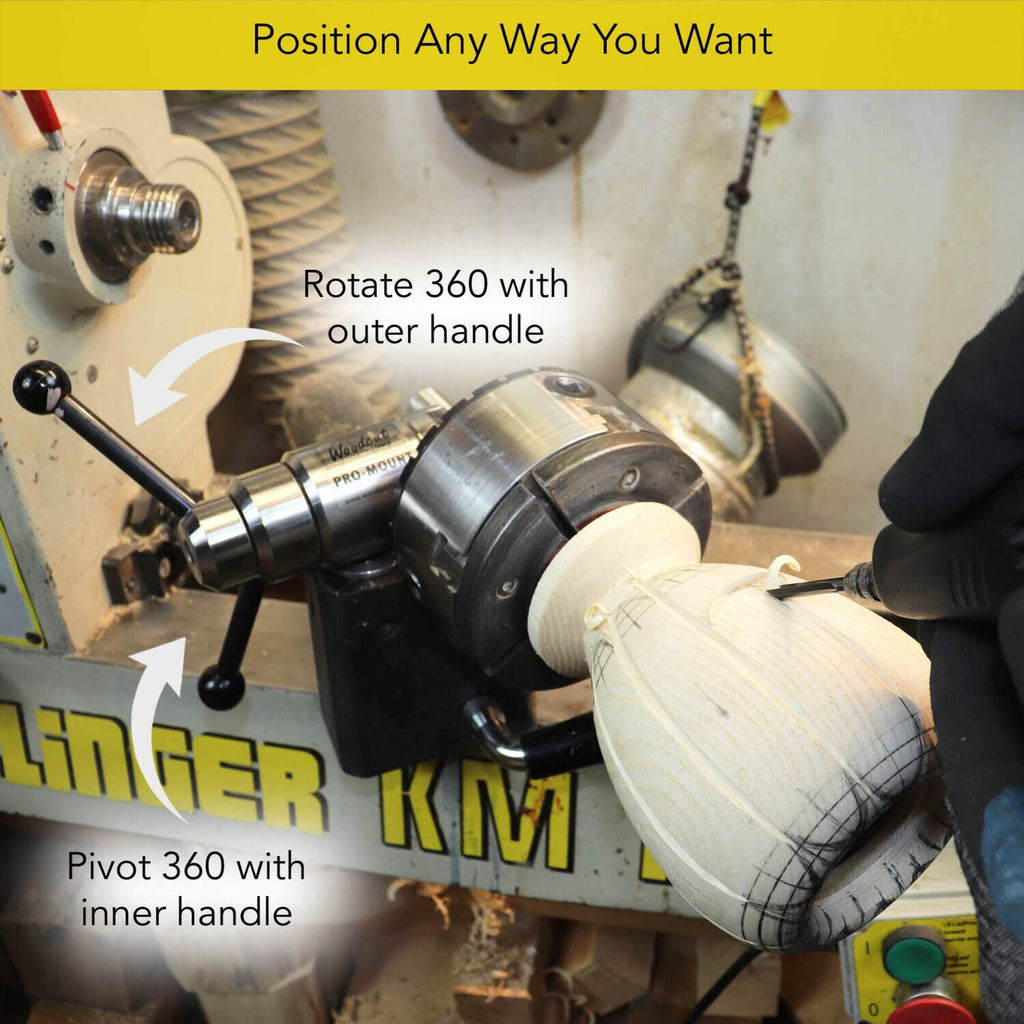 - LATHE TO CARVING TO LATHE - A freshly turned vessel can be moved onto the Pro-Mount whilst remaining in the woodturning chuck allowing it to then be put directly back onto the lathe to finish turning once completing your embellishment or carving.