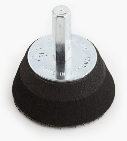 The durable hook-face pads are secured with a high-temperature adhesive backing and accept standard loop-backed sanding discs.