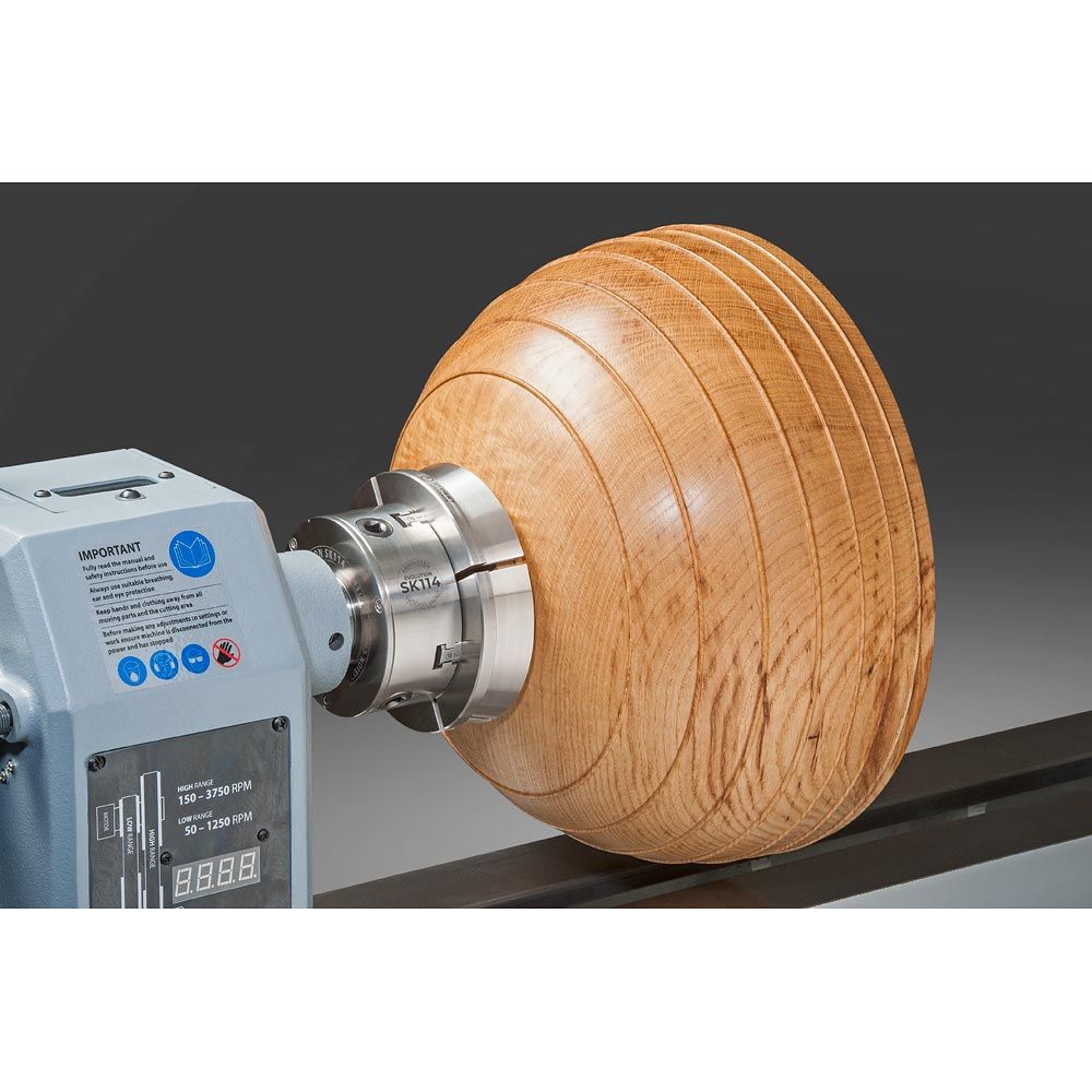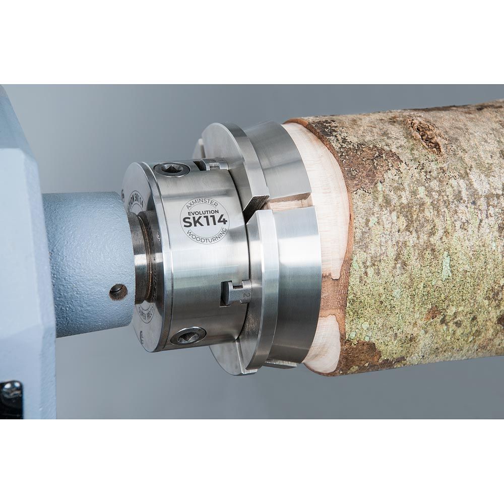 For turning where size matters and projects include very large hollow forms and big bowls and platters. The SK114 Colossus Gripper Jaws offer greatly increased work holding capacity. Based on the well-established design of the SK100 Gripper Jaw Type G type gripper jaws, the Colossus Jaws will expand into a 150mm dovetailed recess or grip onto a spigot of approximately 125mm in diameter. Perfect for those large unseasoned logs you may want to turn into an objet d'art. There is a large degree of variation in the gripping range should the initial cutting of the recess or spigot be slightly inaccurate. Made from stainless steel to protect against corrosion. As with all our dovetail jaws they simply bolt onto the Accessory Mounting Jaws.
