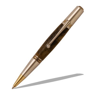 Create an EXTRA special gift with this simply stunning Majestic Squire Gold TN & Chrome Ballpoint Twist Pen. The single 3/8" barrel design makes these kits easy to turn and assemble. Plus, the pen is well balanced for a relaxed writing experience while the ballpoint transmission operation is simple and smooth.