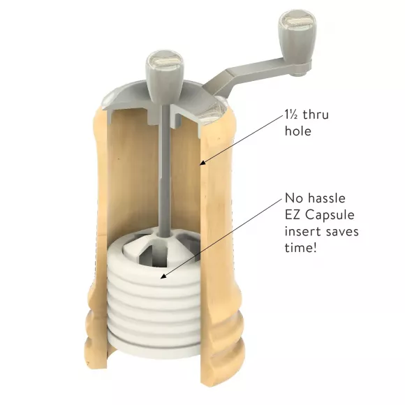 Turn a classic table-ready mill that looks polished on any counter or dinner setting. The EZ-Assemble ceramic capsule keeps every working part in one self-contained unit. This means you create the outside the way you want while the inside stays simple, clean, and reliable. You drill one main hole, glue the capsule into your turned blank, and finish your profile without the usual multi-step setup. The ceramic mechanism stays noncorrosive for both salt and pepper and offers a smooth, adjustable grind that feels consistent with every turn. A 3.5 inch high mill that is quick to make and easy to give.